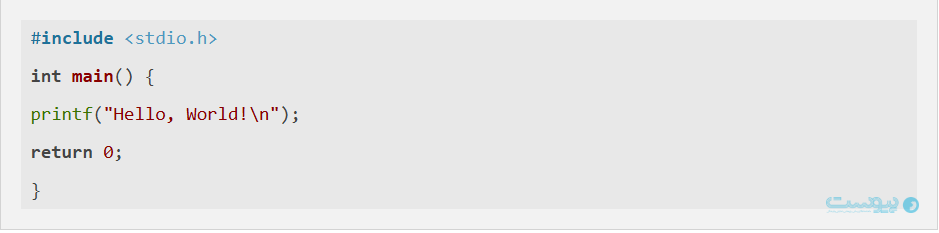 برنامه «Hello, World!» به طور سنتی اولین برنامهای است که مبتدیان یاد میگیرند. بیایید ببینیم که در پایتون در مقایسه با C چگونه به نظر میرسد. در C اینگونه به نظر میرسد: