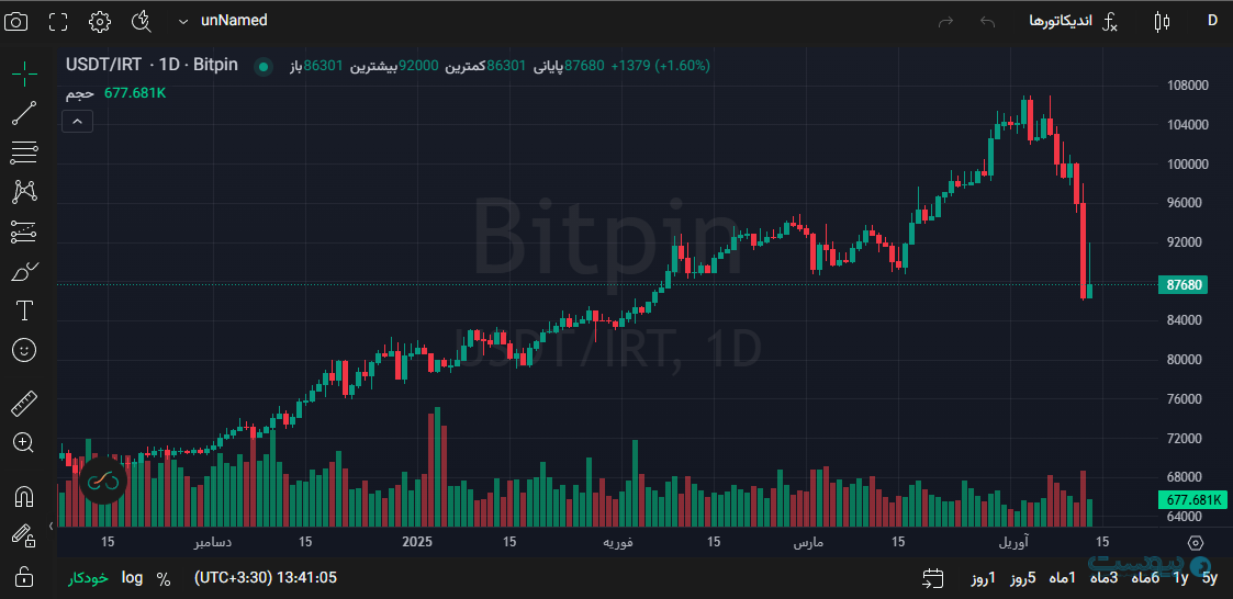 هرچند این روند باتوجه به نوسان بالای قیمتی ادامه دار نبود و با شروع روز ۲۴ فروردین قیمت تتر تا بالای ۹۰ هزارتومان هم برگشت. قیمت تتر در زمان نگارش این خبر در حدود ۸۶ هزار تومان در حال معامله است.