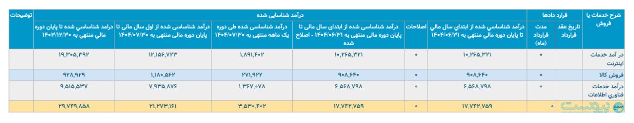 درآمد آسیاتک از ابتدای سال مالی تا پایان مهرماه ۱۴۰۴ بیش از ۲ هزار و ۱۲۷ میلیارد تومان قید شده است.