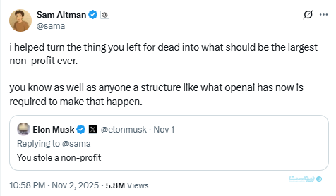 افشای این اسناد بار دیگر به درگیری لفظی میان ماسک و آلتمن منجر شده است. ماسک در پاسخ به پستی از آلتمن در شبکه اجتماعی ایکس نوشت: «تو نهاد خیریه را دزدیدی» و آلتمن نیز با بازنشر این پست در پاسخ گفت: «من کمک کردم تا چیزی که رهایش کردی به بزرگترین نهاد خیریه تاریخ تبدیل شود. تو هم مثل همه میدانی که ساختار الان اوپنایآی برای موفقیت لازم بود.»