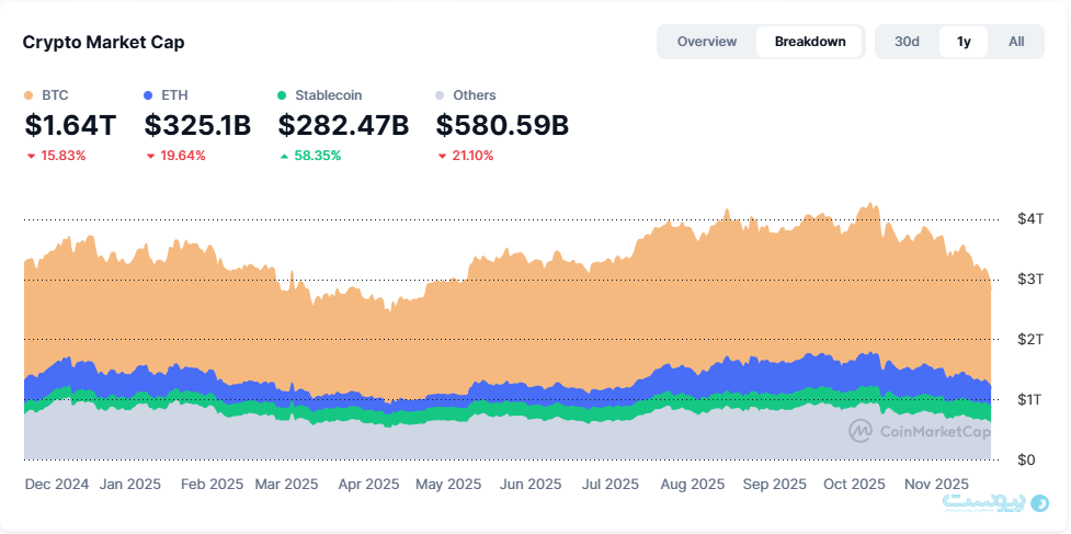 بازار جهانی رمزارزها در طی شش هفته یکی از سختترین سقوطهای خود را تجربه کرده است. بیتکوین، بزرگترین رمزارز بازار در زمان نگارش خبر در حدود ۸۲ هزار دلار معامله میشود و سقوط ارزش آلتکوینها در کنار ریزش بیتکوین باعث شده تا طبق دادههای Coincapmarket، ارزش کلی بازار به کمتر از ۳ هزار میلیار دلار (۲.۸۴ هزار میلیارد دلار) کاهش یابد. نوسانات اخیر که ابتدا با ریزش تاریخی در ماه گذشته آغاز شد و حالا پس از تردیدها در مورد کاهش نرخ بهره فدرال رزرو در ماه دسامبر، شدت بیشتری به خود گرفتهاند. تحلیلگران این مساله را ماحصل یک «وحشت ساختاری در بازارهای پرریسک» توصیف کرده و همین مساله یکی از شرکتهای بزرگ این بازار یعنی مایکرواستراتژی را با خطر بحران روبهرو کرده است.