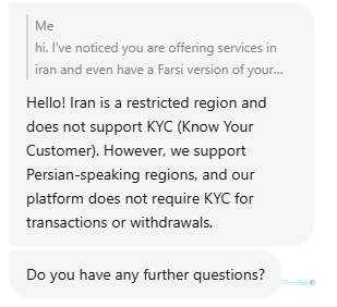 اما چطور صرافی که به روشنی ایران را در لیست سیاه خود دارد هم به تبلیغات گسترده میان کاربران ایران مشغول است و هم با پشتیبانی از زبان فارسی به روشنی برای میزبانی از تعداد بالای کاربران ایرانی آماده است.