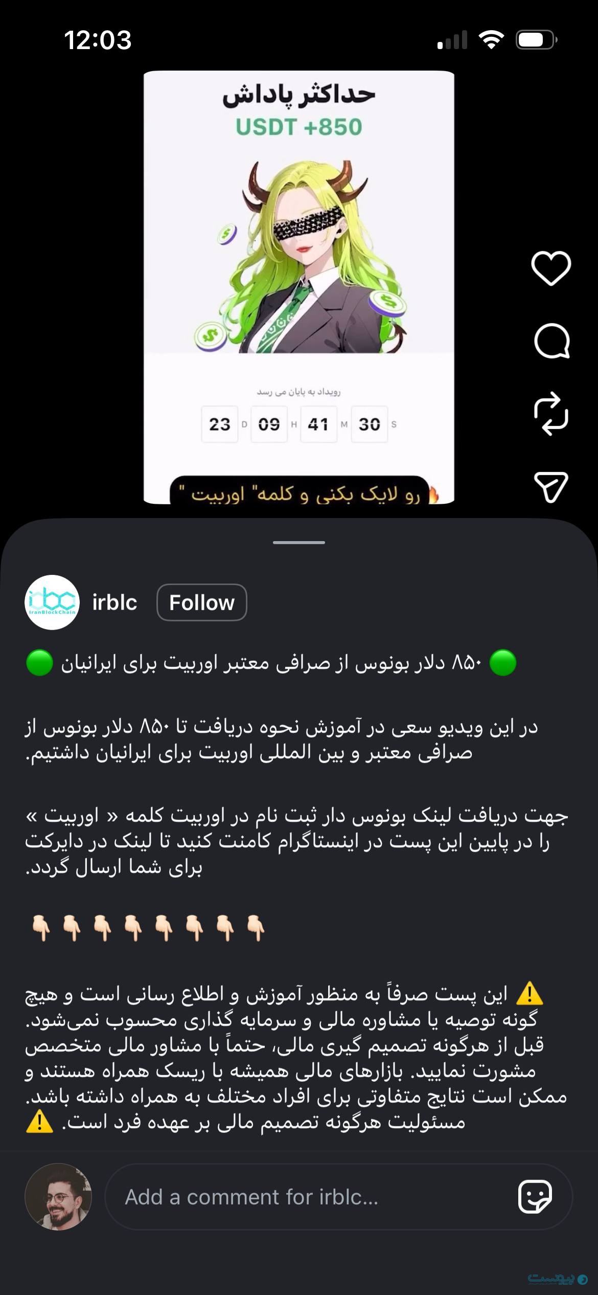 همچنین یک جستجوی ساده در اینستاگرام و تلگرام نشان میدهد که پستهای تبلیغاتی این صرافی به طور خاص کاربران ایرانی (و نه فارسی زبانان) را هدف گرفته است.