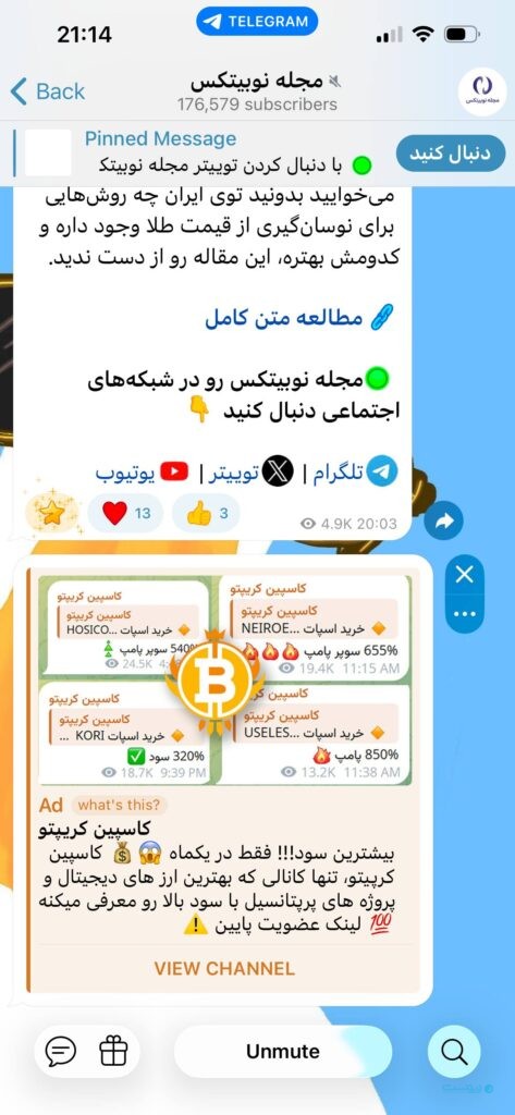 پیامرسان تلگرام یکی از محبوبترین پلتفرمهای اجتماعی در میان کاربران ایرانی است و گرچه آمار دقیقی از تعداد کاربران ایرانی نیست اما برخی گزارشها به بیش از ۴۰ میلیون مشترک ایران در این پلتفرم اشاره دارند و در نتیجه کشور ما یکی از مهمترین جمعیتهای نزدیک به یک میلیارد کاربر تلگرامی است. همین مساله و رویکرد آزادتر این پلتفرم باعث شده تا برخلاف پلتفرمهایی چون ایکس، یوتیوب یا اینستاگرام شاهد حجم زیادی از تبلیغات فارسی در این پیامرسان باشیم. تبلیغاتی که به راحتی از طریق رمزارز تون قابل خریداری هستند و گرچه باید از قوانین مشخصی پیروی کنند، اما تبلیغات گمراهکننده به وفور در میان آنها دیده میشود. ایده اولیه این گزارش از همینجا شروع شد، تبلیغات گمراه کننده اما در یک دسته خاص که شاید پتانسیل بیشتری برای فریب داشته باشد: رمزارزها.