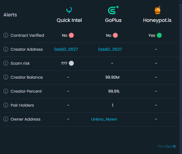 پروژههای میمکوینی برای خالی کردن جیب کاربران تنها یکی از این نمونهها است و در یک مثال دیگر کانال تلگرامی «سیگنال ارزدیجیتال دیجیتال ایردراپ دلار» که در تبلیغات مربوط به بخش جستجوی تلگرام شاهدش بودیم، پروژه tampay را به مشترکان خود پیشنهاد میکند که طبق بررسی دادههای آنچین، ۹۹.۹ درصد از تمام کوینهای آن متعلق به سازنده است و تنها یک دارنده طبق دادههای GoPlus دارد و این در حالی است که در کانال تلگرامی به پتانسیل بالا و افزایش قیمت آن اشاره میشود (گفتنی است که این کانال در طول نگارش خبر به دنبال گزارش متعدد کاربران به عنوان Scam تشخیص داده شده است و دیگر در بخش تبلیغات یا جستجو قابل مشاهده نیست.)