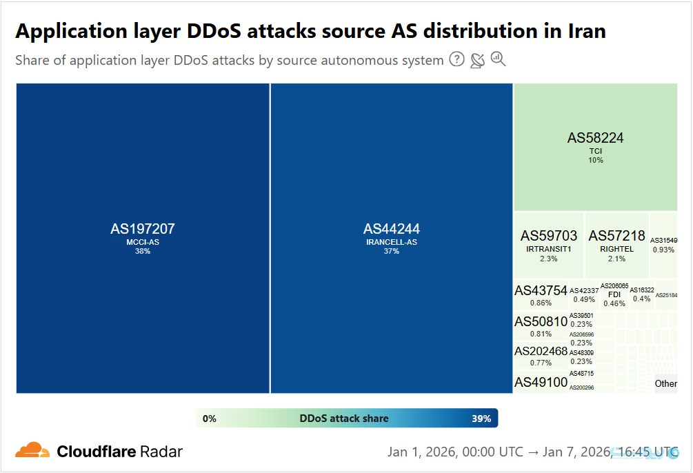 دادههای کلاودفلر در هفته سوم دیماه نشان میدهد موج گسترده حملات سایبری نه از خارج، بلکه از درون زیرساخت ارتباطی ایران و بهویژه از شبکههای موبایل کشور ایجاد شده است. تمرکز بیش از سهچهارم ترافیک مخرب در دو اپراتور تلفن همراه به این معناست که میلیونها گوشی هوشمند شهروندان، ناخواسته به ابزار یک عملیات سایبری بینالمللی تبدیل شدهاند. رخدادی کمسابقه که مرز میان «کاربر عادی» و «عامل حمله» را از بین میبرد و اینترنت ایران را از یک فضای تحت محدودیت، به منشأ فعال تهدید در مقیاس جهانی بدل میکند.