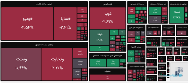 شرکتهای گروه خودروسازی و قطعات و همچنین بانکها و موسسات مالی و اعتباری همچنان سرخپوش ماندند.