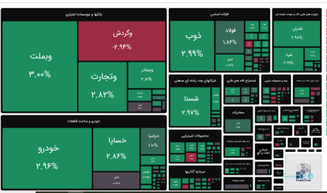 شاخص کل فرابورس نیز در این روز با رشد ۶۳۳ واحد و ۱.۸۷ درصدی به ۳۴ هزار و ۴۶۴ واحد رسید. شاخص کل هموزن این بازار نیز ۱.۳۴ درصد رشد کرد.