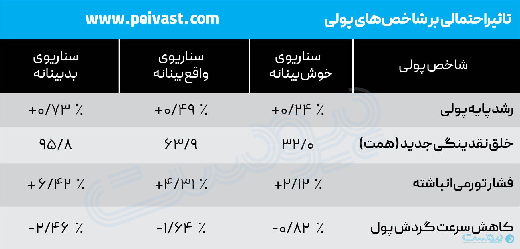 تورم ناشی از این فرآیند، حاصل ترکیب رشد پایه پولی و کاهش تولید واقعی (GDP) است. طبق محاسبات پیشین، در سناریوی بدبینانه، ۱.۰۲ درصد از تولید کل کشور از دست رفته است. افزون بر این، عامل دیگری نیز باید در نظر گرفته شود: سرعت گردش پول. قطع ۲۰ روزه اینترنت، با توجه به نقش اینترنت بهعنوان نهاده واسطهای موجب منجمد شدن بخشی از نقدینگی در حسابها شده و کارایی گردش پول را کاهش داده است؛ عاملی که میتواند فشارهای تورمی و رکودی را بهصورت همزمان تشدید کند.