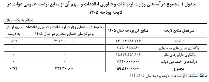 حدود ۹۳ درصد منابع درآمدی وزارت ارتباطات از محل حقالسهم دولت از اپراتورها حاصل خواهد شد، میتوان اینگونه جمعبندی کرد که دولت برای تحقق رشد درآمدهای بودجه در بخش فاوا در سال ۱۴۰۵ بیشتر متکی به افزایش درآمد اپراتورهای مخابراتی است.