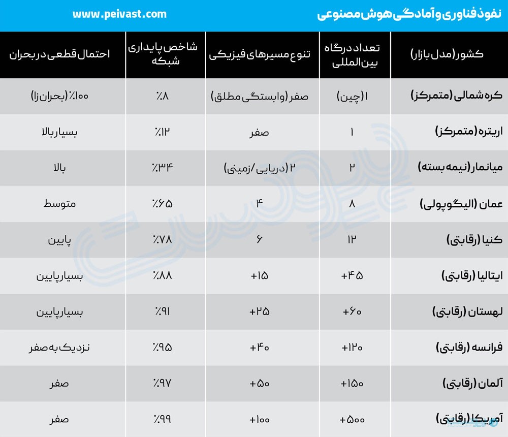 در حالی که در مونوپولیهایی مثل جیبوتی یا اتیوپی (پیش از آزادسازی)، اختلال در درگاه اصلی دولت به معنای خاموشی کامل کشور است، در بازارهای رقابتی نظیر ژاپن با دهها ایستگاه کابل زیردریایی، حاکمیت میتواند در صورت حمله سایبری یا بحران، ترافیک را به صورت دینامیک بین اپراتورهای مختلف توزیع کرده و همزمان کنترل خود را بر تمامی این مسیرها حفظ کند.