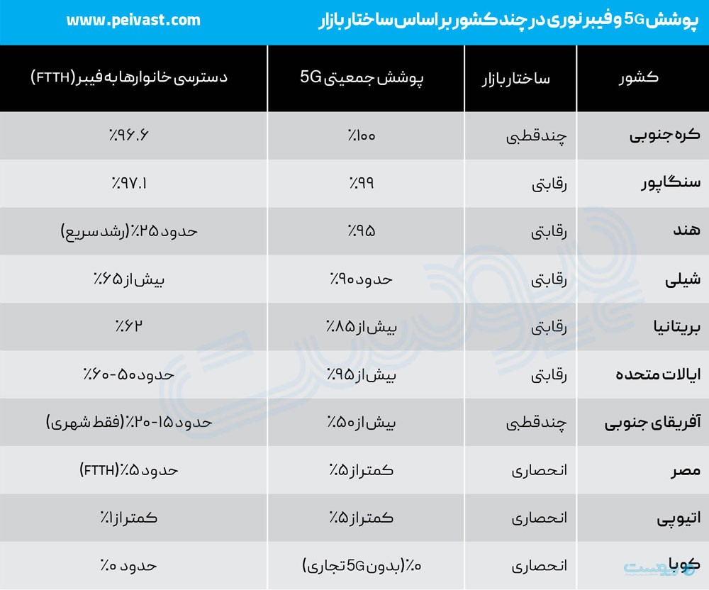 توسعه فناوریهای لبهای نظیر 5G و فیبر نوری (FTTH) در بازارهای رقابتی، به دلیل فشار رقبا و پویایی سرمایه، با سرعتی غیرقابل مقایسه با انحصارهای دولتی پیش میرود. در بازار رقابتی شیلی، اپراتورهایی نظیر Movistar و Entel برای حفظ سهم بازار خود، مسابقهای برای استقرار فیبر نوری آغاز کردند که منجر به پوشش خیرهکننده بیش از ۸۰ درصدی و میانگین سرعت ۲۸۰ مگابیت بر ثانیه شد. در حالی که در بازار انحصاری مصر، شرکت Telecom Egypt به دلیل نبود رقیب، همچنان بر بستر فرسوده مسی (DSL) تکیه دارد و سرعت را در محدوده ناچیز ۳۰ تا ۴۰ مگابیت متوقف کرده است. البته مصر فیبرنوری دارد ولی از نوع FTTC است به این معنی که تا نقاط توزیع راهاندازی شده و دسترسی کاربران از نقاط توزیع همچنان بر اساس DSL است.