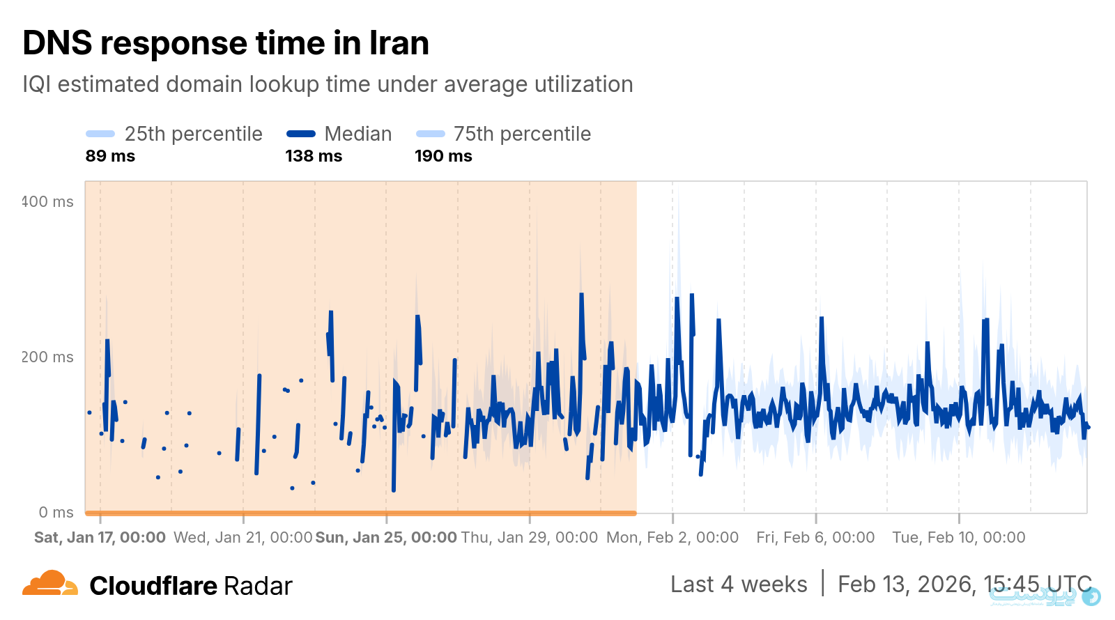 انطباق این دادهها با گزارش ناهنجاریهای پلتفرم OONI، لایه نهایی این تحلیل را تکمیل میکند. افزایش معنادار نرخ ناهنجاری (Anomaly) در تستهای وب، با نوسان در دادههای کلاودفلر خصوصا در زمان پاسخدهی DNS و Latency همخوانی دارد. این وضعیت منجر به پدیدهای شده است که در آن اینترنت از نظر فیزیکی «متصل» است، اما به دلیل بالا رفتن زمان انتظار اولیه (Timeout)، اکثر خدمات وب و اپلیکیشنها عملاً از کار میافتند. این مهندسی دقیق ترافیک، فرضیه محدودیتهای فنی یا زیرساختی را رد و مدیریت متمرکز و آگاهانه اختلال اینترنت ایران را تائید میکند.