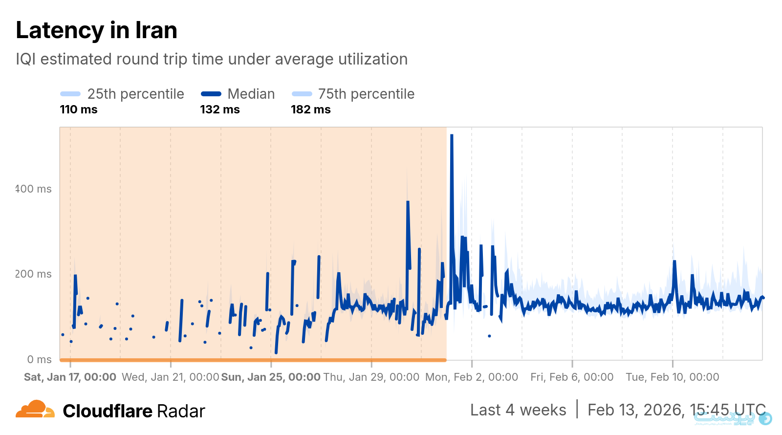 در لایه پروتکل نیز، حذف سیستماتیک IPv6 و سرکوب پروتکل QUIC شواهد غیرقابل انکاری از مداخله مهندسیشده هستند. سقوط نرخ استفاده از IPv6 به یک درصد، لزوماً نیازمند تغییر در جداول مسیریابی هسته شبکه ملی (BGP) است و نمیتواند ناشی از یک خرابی اتفاقی باشد. این اقدام آگاهانه، با هدف اجبار تمامی کاربران به استفاده از پروتکل قدیمی IPv4 انجام شده تا نظارت بر ترافیک از طریق تجهیزات متمرکز نظارتی تسهیل شود. همزمان، ایجاد تاخیر مصنوعی (Latency Injection) در لایه IPv4 باعث شده است که برای یک چهارم کاربران اینترنت ایران، تاخیر شبکه به ۱۸۲ میلیثانیه برسد، که این موضوع به طور مستقیم پایداری اتصالات رمزشده و فیلترشکنها را هدف قرار میدهد.