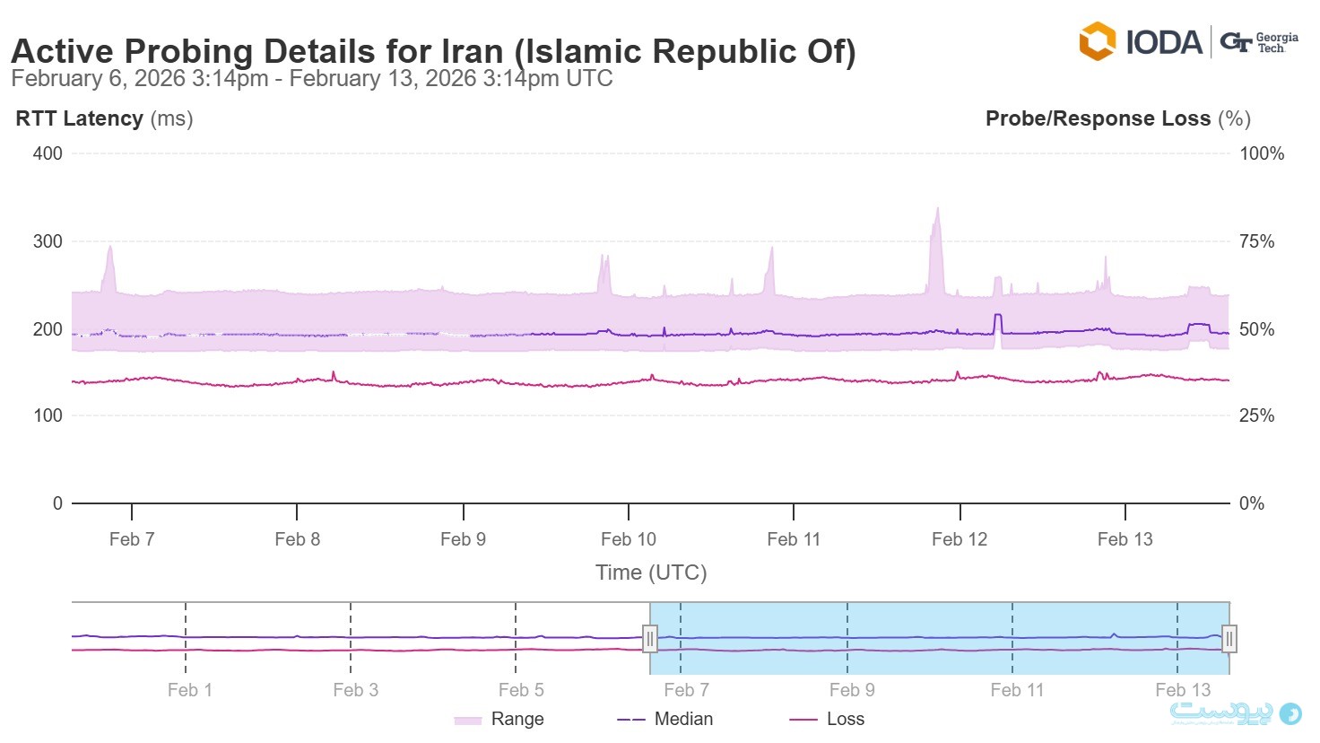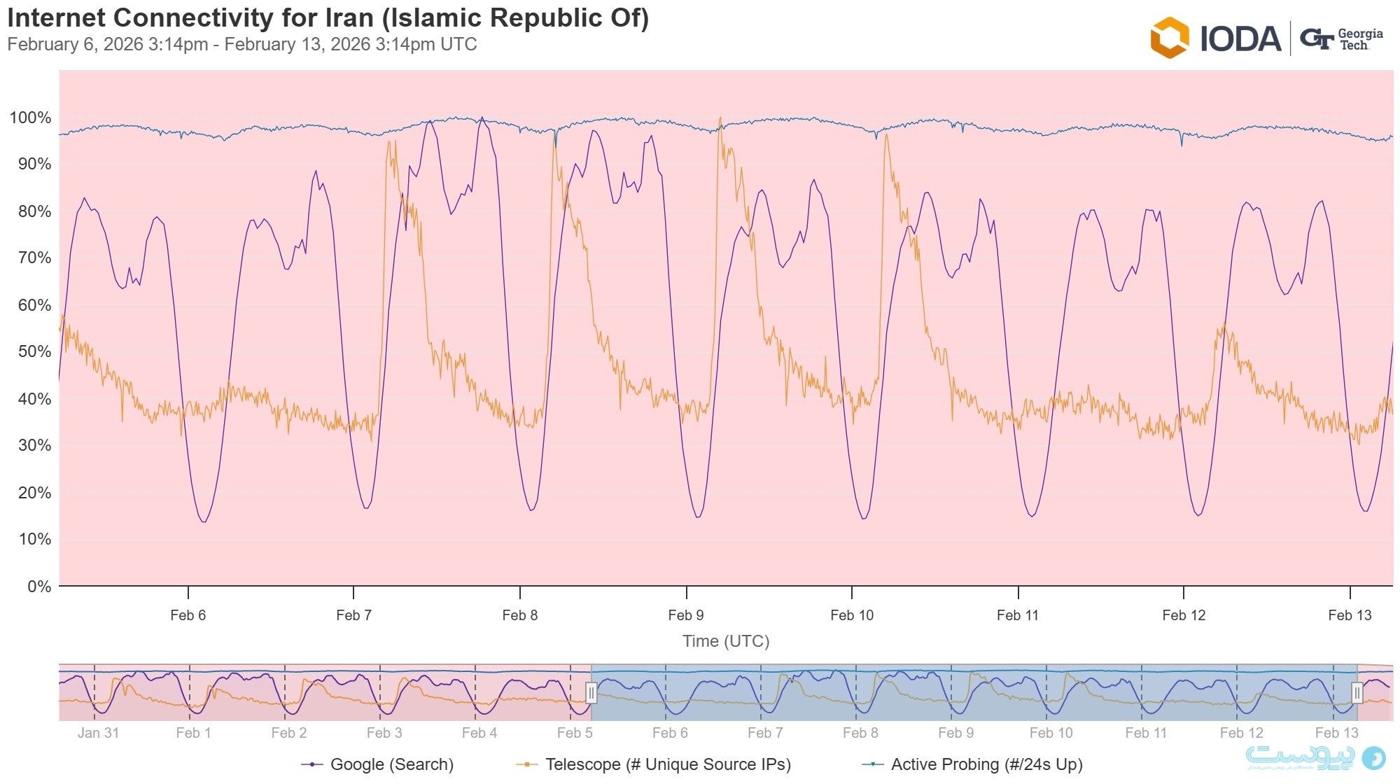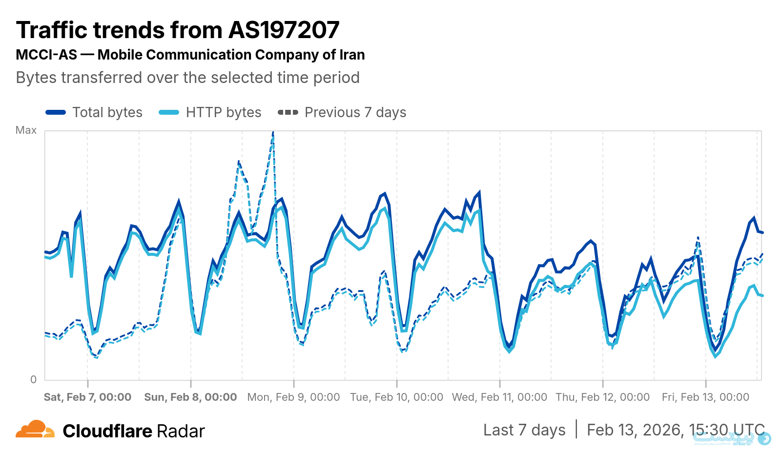 البته باید به این نکته هم توجه داشت که دادههای ioda این اختلال را نشان نمیدهد. بنابراین محدودیت در سطح کانکشنها رخ نداده اما ترافیک شبکه افت چشمگیر داشته است.