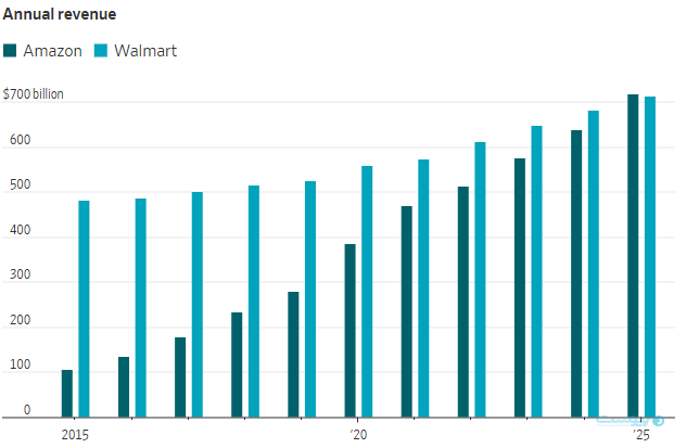 شرکت خردهفروشی والمارت آمریکا حدود دو دهه است که به عنوان بزرگترین شرکت این کشور از لحاظ درآمد شناخته میشود، جایگاهی که به مدیران شرکت اجازه میداد خود را «فورچن ۱» به معنای جایگاهی جدای از تمام دیگر شرکتها معرفی کنند اما روز پنجشنبه پادشاهی والمارت پس از سالیان دراز به پایان رسید و بزرگترین شرکت تجارت الکترونیک آمریکا، آمازون، در ۳۱ سالگی خود درآمد سالانهای بالاتر از والمارت به ثبت رساند.