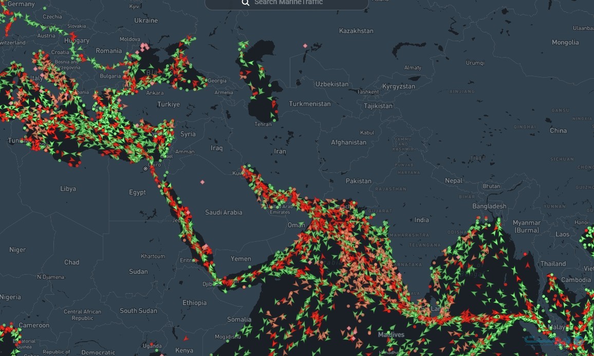 MarineTraffic: موقعیت لحظهای کشتیهای تجاری را نمایش میدهد و برای شناسایی توقف یا تغییر مسیر در تنگههای استراتژیک به کار میرود. marinetraffic.com