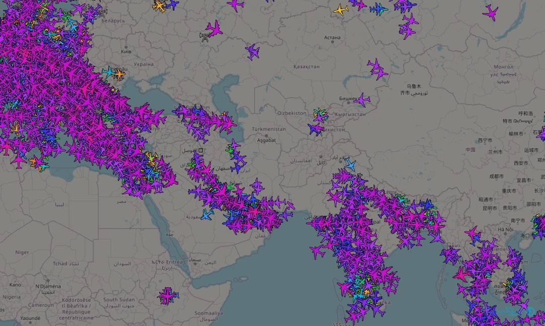 Flightradar24: پروازهای غیرنظامی را روی نقشه نشان میدهد و برای رصد خالی شدن مسیرهای هوایی یا حضور تانکرهای سوخترسان استفاده میشود. flightradar24.com