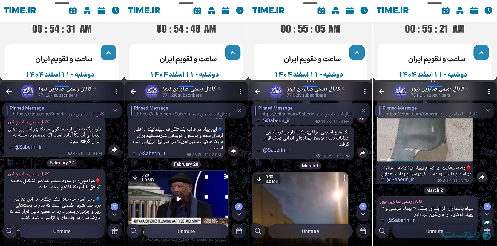 در یک مثال دیگر میتوان کانال صابرین در تلگرام را بررسی کرد. این کانال اگرچه حدود ۷۷۰ هزار مشترک دارد اما تعداد بازدیدکنندگان روزانه هر یک از پستهای آن تقریبا با یورونیوز مشابه است. با توجه به رویکرد اصولگرایانه این کانال به نظر میرسد تعداد دنبالکنندگان صابرین بهطور معنیداری در ایران بیشتر از خارج از کشور باشد. در این کانال هم بعد از قطع اینترنت تعداد بازدید هر پست از حدود ۳۸ هزار به ۱۰ هزار بازدید رسیده است ولی باتوجه به پوشش وسیع اخبار جنگ، سرعت بازدید محتوا در این کانال بیشتر است و نیمهعمر محتوای آن به حدود یک ساعت میرسد. از این سرعت هم میتوان اینطور پیشبینی کرد که کاربران بیشتری از داخل ایران این کانال را دنبال میکنند.