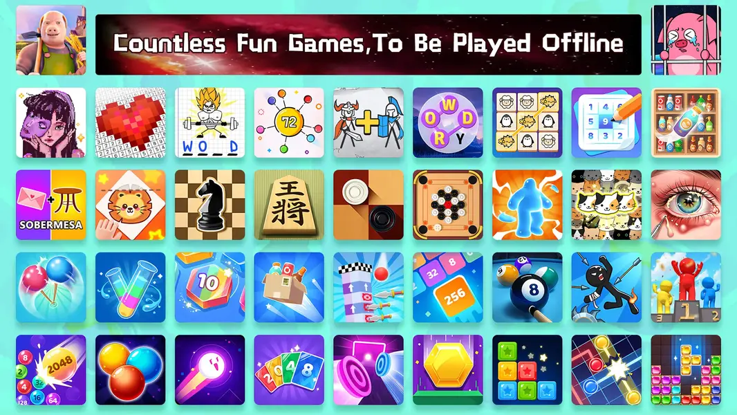 در بازی Offline Games مجموعه متنوعی از پازلهای سرگرمکننده وجود دارد که میتوان آنها را به صورت ۱ تا ۴ نفره بازی کرد. در کافه بازار لیستی از بازیهای تفننی هم پیدا میکنید که اغلب آنها آفلاین هستند.