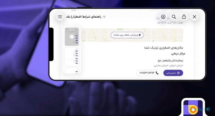 از مهمترین قابلیتهایی که بلد در این دوران ارائه کرده است، راهنمای اضطراری بلد است. این بخش به کاربران امکان میدهد با انتخاب موقعیت خود یا یک منطقه مشخص روی نقشه، فهرستی از مراکز ضروری اطراف را مشاهده کنند. بیمارستانها، مراکز درمانی، داروخانههای شبانهروزی، نانواییها، سوپرمارکتها، جایگاههای سوخت و دستگاههای خودپرداز از جمله مراکزی هستند که اطلاعات آنها در این بخش نمایش داده میشود. برای هر مکان نیز اطلاعاتی مانند نام مرکز، آدرس، شماره تماس و امکان مسیریابی مستقیم در اپلیکیشن ارائه شده تا کاربران بتوانند در کوتاهترین زمان مسیر خود را پیدا کنند.