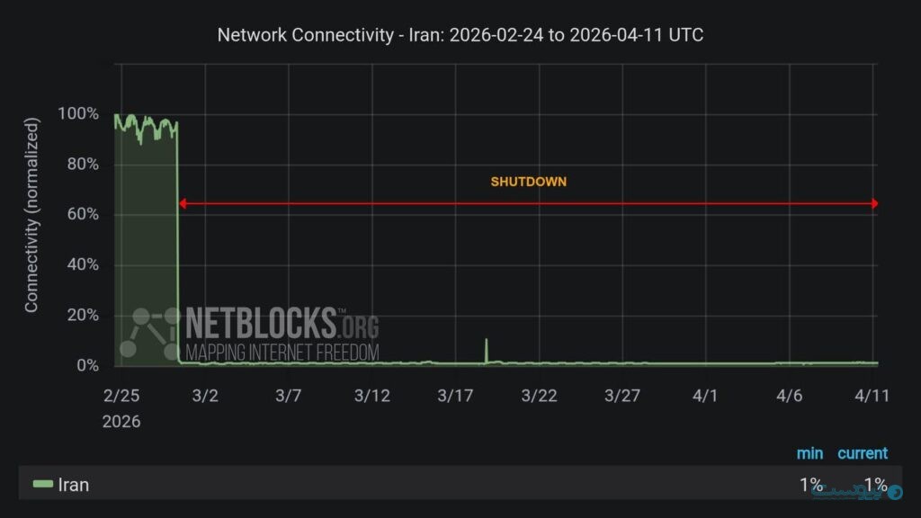 میزان قطعی اینترنت در ایران از ۱۰۰۰ ساعت گذشت. طبق گزارش نت بلاکس قطعی اینترنت در ایران وارد روز ۴۳ خود شده است و تا کنون بیش از ۱۰۰۸ ساعت است که اینترنت در ایران قطع است. میزان دسترسی به اینترنت بین الملل در این مدت در حد یک درصد باقی مانده است.